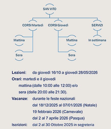 Nel 2010 un gruppo di volontari decide di istituire la scuola di italiano con lo scopo di aiutare l'integrazione dei numerosi stranieri presenti nella nostra comunità e da allora ogni anno persone, non necessariamente insegnanti, prestano la loro opera per conoscere e farsi conoscere, per creare un ponte tra culture e situazioni diverse, tra chi in zona abita da sempre e chi viene a viverci arrivando da ogni parte del mondo.