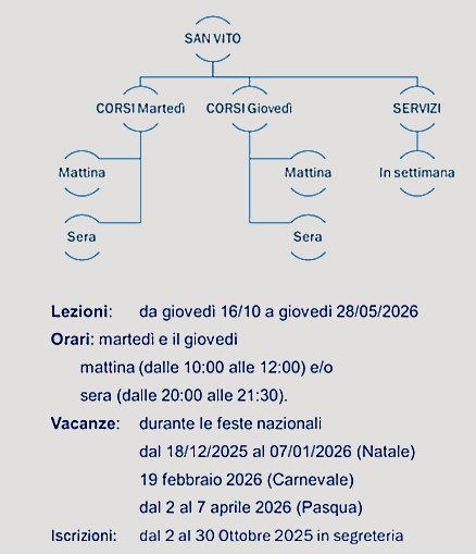 Iscrizioni: Le iscrizioni si ricevono dal 2 al 30 ottobre in segreteria o per mail all'indirizzo italianoperstranieri.sanvito@gmail.com